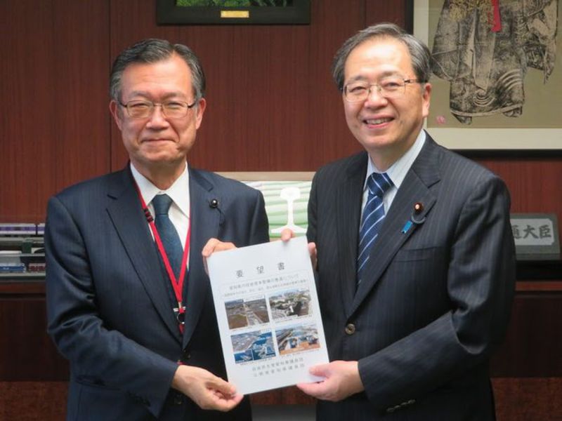 要望書では、愛知県の経済の力強い回復を実現するために、国際競争力を強化する道路・港湾などの整備や防災・減災、国土強靭化の取組みを着実に推進すように要望しました。